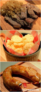 Para começar, uma linguiça portuguesa que o marido adora, a alheira (feita de carne de porco e aves). Deliciosa e delicada, só precisa dourar em um pouquinho de azeite. Mas com cuidado, pois ao contrário da regra geral (que diz que não devemos ficar mudando de lado as carnes), aqui você precisa mudar a cada 10 segundos, caso contrário ela vai estourar.
