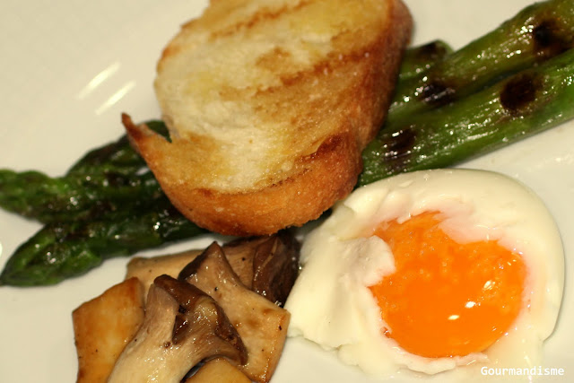 Aspargos, Cogumelos e Ovo Caipira regados com Azeite de Trufas