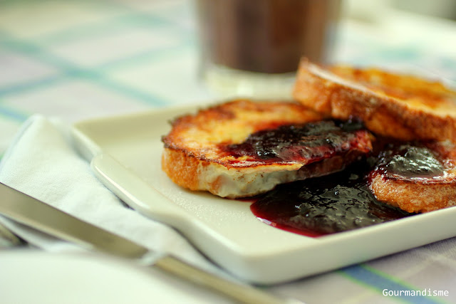 Para servir, polvilhe as french toasts com o açúcar de confeiteiro e regue com um pouco da calda de geleia.