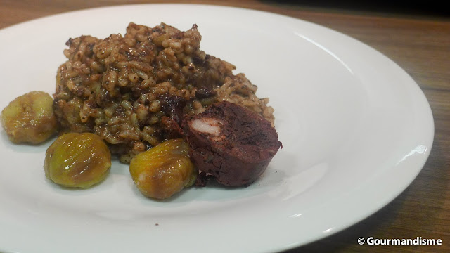Risoto de morcilla, Calvados e castanha portuguesa
